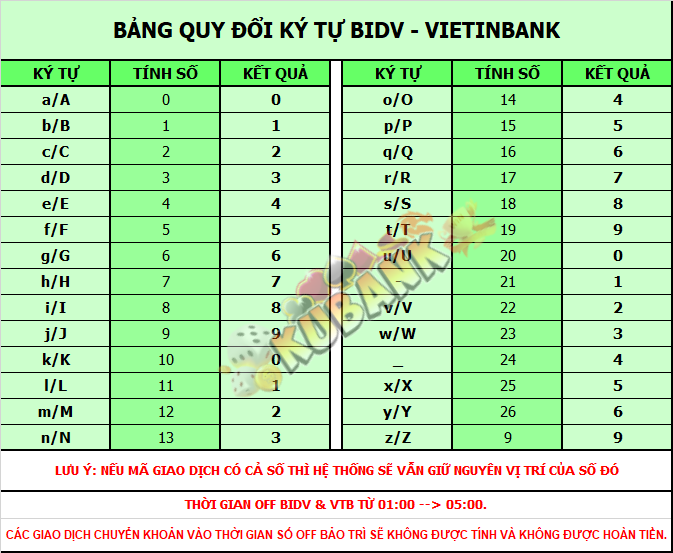 KẾT QUẢ TÍNH BẰNG SỐ CUỐI CỦA MÃ GIAO DỊCH BANK KHI CHUYỂN
